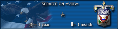 The Soldier's Medal is awarded to any person of the VHB Army who has distinguished him/herself by heroism involving actual conflict with an enemy. The same degree of heroism is required as for the award of the Distinguished Service Medal. The performance must have involved personal danger within the game and risk involving conflict with an armed enemy. You may receive more than one. The Attack Team Specialst Medal is awarded for exemplary behavior, efficiency, and fidelity while serving as a member of the VHB Army.   The member must have exhibited honest and faithful service in accordance with the standards of conduct, courage and duty required by VHB rules and regulations. A member must be recommended for the award by his/her unit commander to the Sergeant Major of the Army.  You may receive more than one. The Good Conduct Medal is awarded for exemplary behavior, efficiency, and fidelity on and off the field of battle. It is awarded on a selective basis to each soldier who distinguishes him/herself from among his/her fellow soldiers by their exemplary conduct, efficiency, and fidelity throughout a continuous and active VHB military service. The Elite Soldier Ribbon - This ribbon is awarded by the Sergeant Major of the Army.   This award is given to an individual within VHB for extraordinary heroism in action against an enemy.  The soldier must display such gallantry, determination in accomplishing its mission under extremely difficult conditions as to set him/herself apart and above other soldiers participating in the same campaign or without.  You can receive more than one.