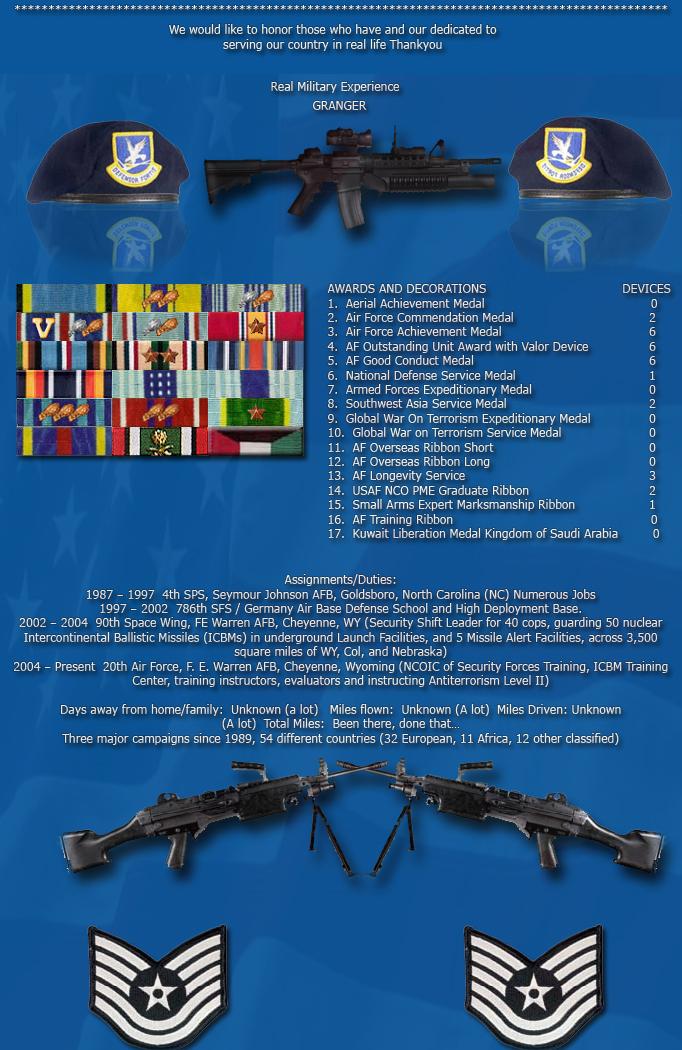 Since no one can purchase the actual Medal of Honor, this ribbon will serve as VHB's Medal Of Honor. The Medal of Honor is the hightest award you can receive and is awarded by General Vern, to a person who while a member of the Army, distinguishes himself or herself by gallantry. The deed performed must have been one of personal bravery or self-sacrifice so conspicuous as to clearly distinguish the individual above his or her comrades and must have involved risk of life. Incontestable proof of the performance of the service will be exacted and each recommendation for the award of this decoration will be considered on the standard of extraordinary merit.  You can receive more than one. The General's Oustanding Service Ribbon is awarded by General Vern. This award is given to an individual within VHB for dedication and commitment. The soldier must display such dedication to duty, and commitment to the =VHB= Army which sets themselves above others. You can receive more than one.